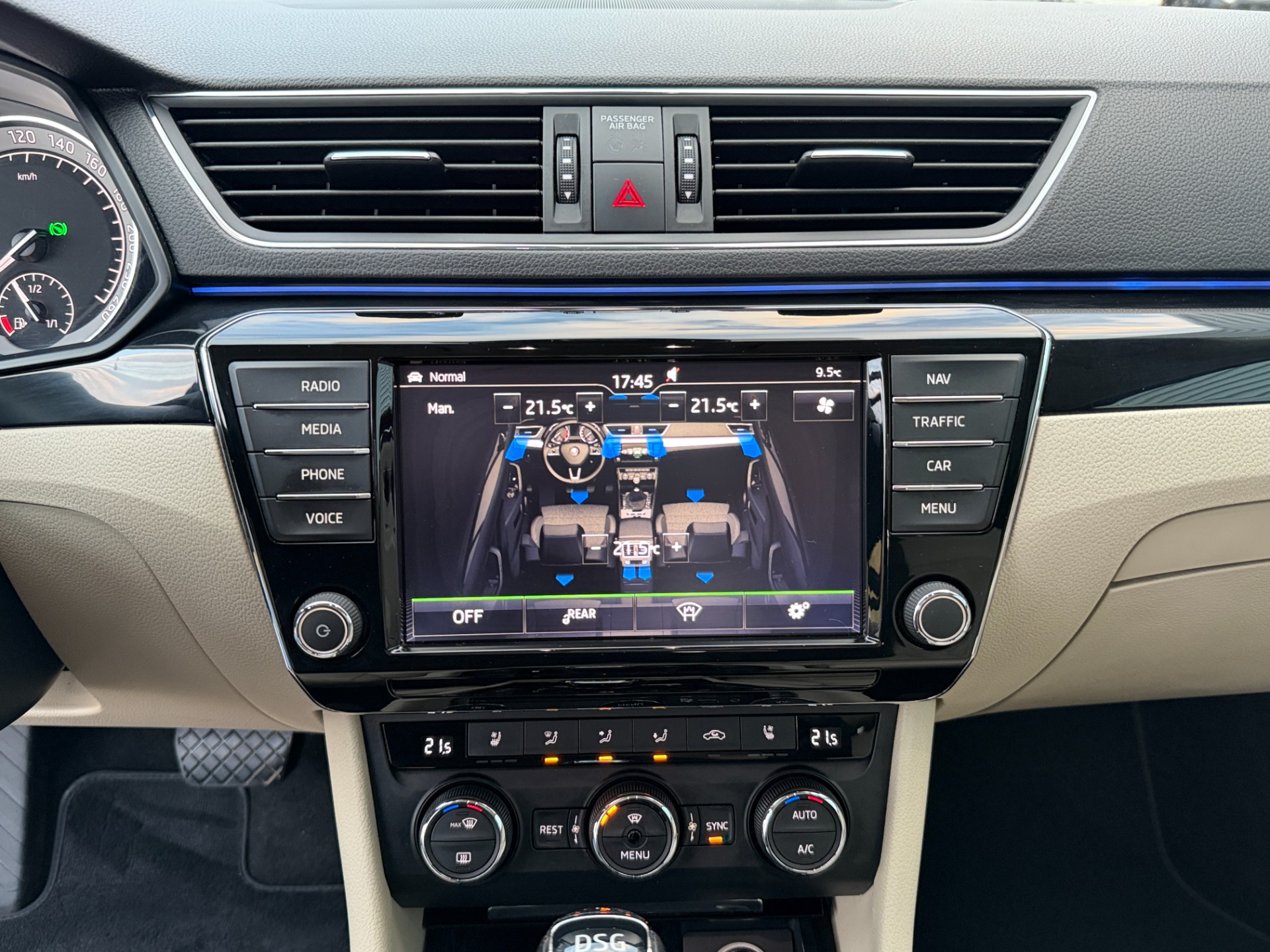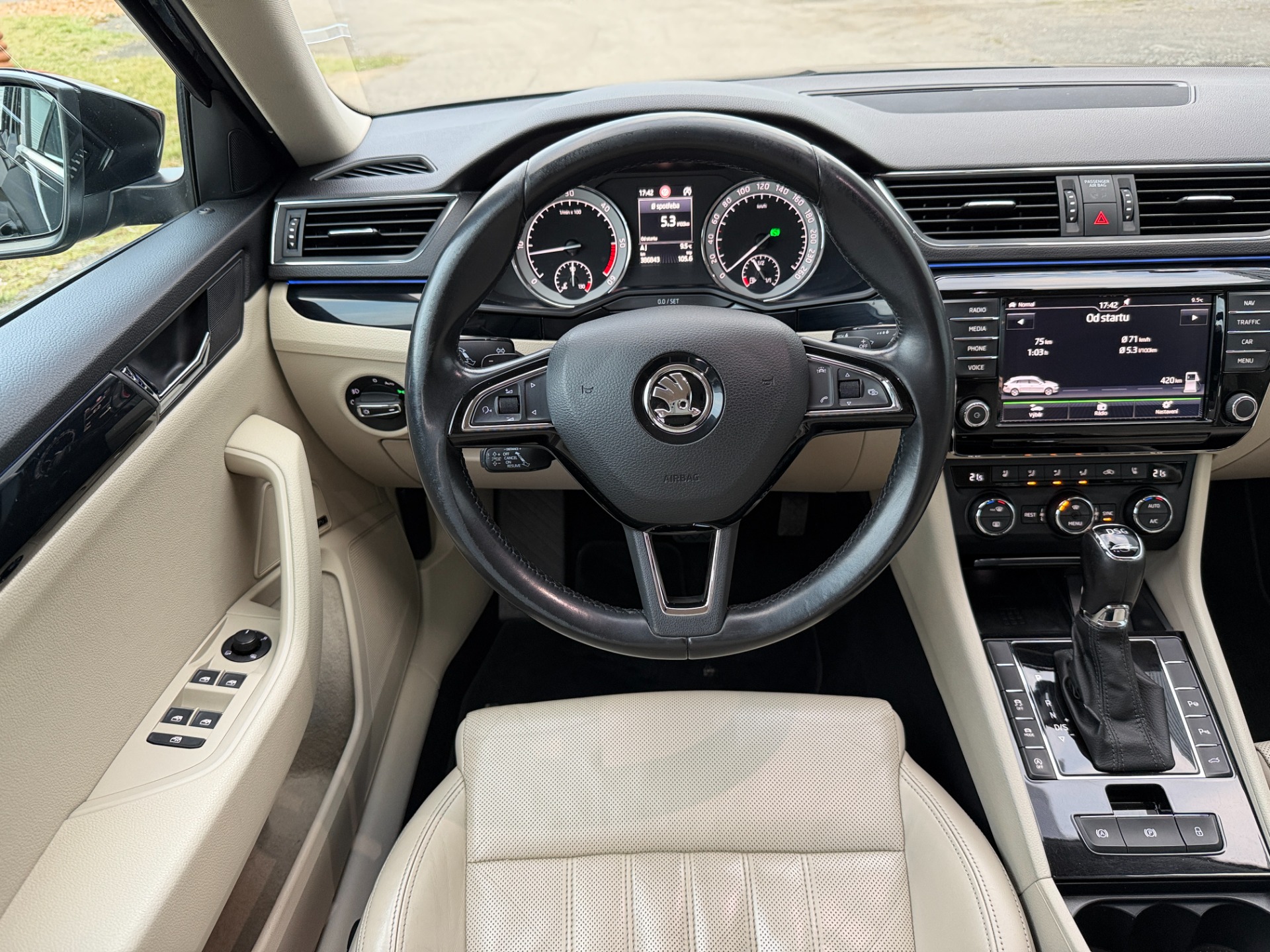 Výbava: Laurin & Klement, interiér světlá kůže, LED paket, digitální klimatizace třízonová, multifunkční volant, tempomat, elektrická okna 4x, odvětrávaná přední sedadla, vyhřívaná sedadla přední i zadní, vyhřívaná zrcátka, el. sklopná zrcátka, el. nastavitelná zrcátka, loketní opěrky, kožený paket, ALU kola Dezent R18, parkovací senzory přední i zadní, parkovací kamera, AUX/USB/SD, hlídání mrtvého úhlu, asistent jízdy v pruzích, Bi-Xenonové světlomety (nyní s LED žárovkami místo xenonů) adaptivní a natáčecí, adaptivní podvozek DCC, automatická převodovka DSG s možností řazení pod volantem, vyhřívané čelní sklo, SunSet paket + zatmavení zadních skel s atestem, roletky zadních oken, bezklíčové odemykání a startování, tažné zařízení na 2T, sedadlo řidiče s pamětí, el. ovládaná přední sedadla, el. víko kufru, ambientní osvětlení interiéru, SmartLink, automatické parkování ... Kosmetické vady úměrné stáří.